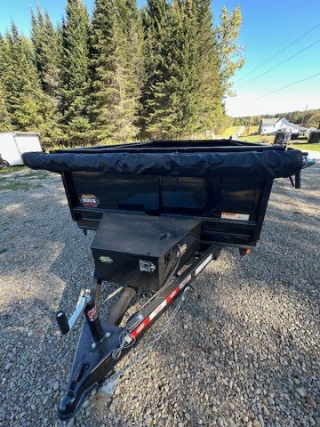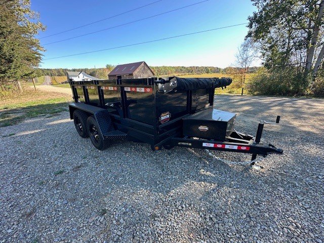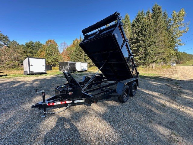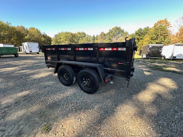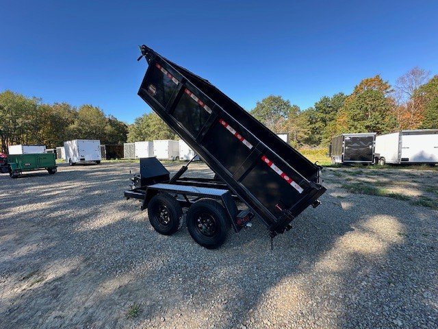 NEW 2026 PROSPECTOR DUMP TRAILER 6X10 BLACK 6X12 DUAL AXLE DUMP 2 5/16 COUPLER POWDER COAT 2 3500LBS EZ LUBE AXLES WITH GREASE FITTINGS 8K TOP WIND JACK LED LIGHTS 10 GAUGE FLOOR 12 GAUGE WALLS HYDRAULIC PUMP & BATTERY IN FRONT BOX LOCKABLE 110 CHARGER POWER UP ,POWER DOWN, GRAVITY DOWN REAR DOUBLE SWING DOORS TARP KIT SINGLE RAM 8 PLY TIRES SPARE TIRE MOUNT THE TRAILER FARM IS NOT RESPONSIBLE FOR ANY TYPOS OR MISPRINTS CASH OR CHECK $7095 THERE IS A 3% SURCHARGE FOR USE OF A DEBIT OR CREDIT CARD