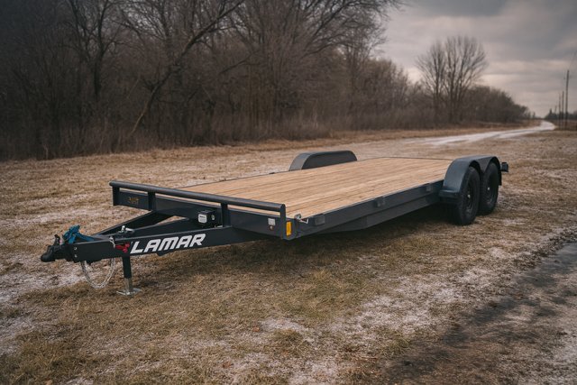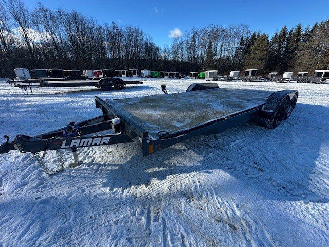 2026 LAMAR TRAILERS 83X20 7K CAR HAULER/EQUIPMENT 83" WIDE X 18' DECK W/2' DOVE TAIL BUMPER PULL 3.5K EZ LUBE ELECTRIC BRAKE SPRING AXLE(S) 205/75 R15 (C) 6PLY TIRE WITH BLACK WHEEL SPARE TIRE MOUNT 2" 10K DEMCO ADJ CAST COUPLER 2K TOP-WIND FLIP JACK WRAP TONGUE 2' DOVE PAIR OF SLIDE-IN RAMPS REMOVABLE ROUND DIAMOND PLATE TEARDROP FENDERS STANDARD STAKE POCKETS FOUR WELD ON D-RINGS 5" CHANNEL FRAME 24" CENTER-TO-CENTER CROSSMEMBERS RUB RAIL TREATED YELLOW PINE FLOOR WIRING LED PACKAGE LAMAR GRAY POWDER COAT 7000 THE TRAILER FARM IS NOT RESPONSIBLE FOR ANY TYPOS OR MISPRINTS CASH OR CHECK $4150 THERE IS A 3% SURCHARGE FOR USE OF A DEBIT OR CREDIT CARD