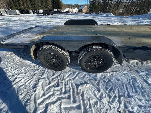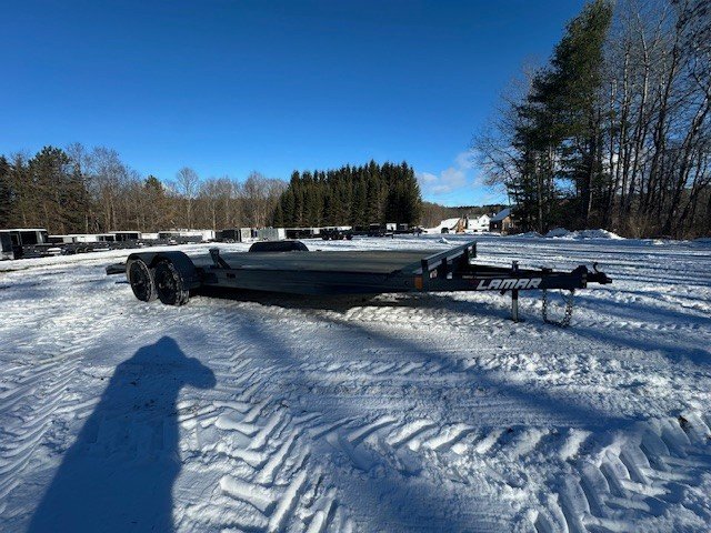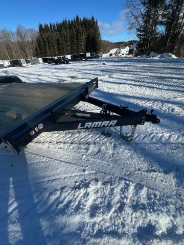 2026 LAMAR TRAILERS 83X22 7K CAR HAULER/EQUIPMENT 83" WIDE X 20' DECK W/2' DOVE TAIL BUMPER PULL 3.5K EZ LUBE ELECTRIC BRAKE SPRING AXLE(S) 205/75 R15 (C) 6PLY TIRE WITH BLACK WHEEL SPARE TIRE MOUNT 2" 10K DEMCO ADJ CAST COUPLER 2K TOP-WIND FLIP JACK WRAP TONGUE 2' DOVE PAIR OF SLIDE-IN RAMPS REMOVABLE ROUND DIAMOND PLATE TEARDROP FENDERS STANDARD STAKE POCKETS FOUR WELD ON D-RINGS 5" CHANNEL FRAME 24" CENTER-TO-CENTER CROSSMEMBERS RUB RAIL TREATED YELLOW PINE FLOOR WIRING LED PACKAGE LAMAR GRAY POWDER COAT 7000KGVW THE TRAILER FARM IS NOT RESPONSIBLE FOR ANY TYPOS OR MISPRINTS CASH OR CHECK $4295 THERE IS A 3% SURCHARGE FOR USE OF A DEBIT OR CREDIT CARD