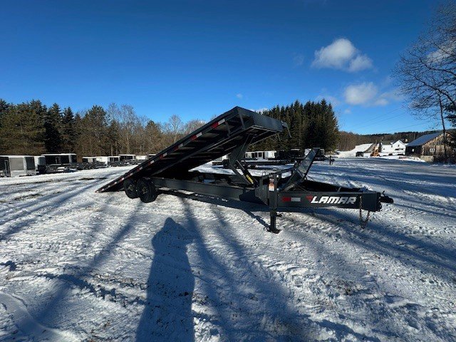 2026 LAMAR TRAILERS 102X24 DECKOVER POWER TILT 14KGVW BUMPER PULL 7K EZ LUBE ELECTRIC BRAKE SPRING AXLE(S) 235/80 R16 (E)10PLY TIRE WITH BLACK WHEEL 2-5/16" 21K DEMCO ADJ CAST COUPLER DUAL 10K DROP-LEG JACKS FRONT TOOL BOX STANDARD STAKE POCKETS 10" 12 LB I-BEAM FRAME 16" CENTER-TO-CENTER CROSSMEMBERS RUB RAIL 12V DC PUMP DEFAULT REMOTE TREATED YELLOW PINE FLOOR DECK MOUNT WINCH PLATE LED PACKAGE 12V DEEP CYCLE BATTERY KIT LAMAR GRAY POWDER COAT 14KGVW THE TRAILER FARM IS NOT RESPONSIBLE FOR ANY TYPOS OR MISPRINTS CASH OR CHECK $11795 THERE IS A 3% SURCHARGE FOR USE OF A DEBIT OR CREDIT CARD