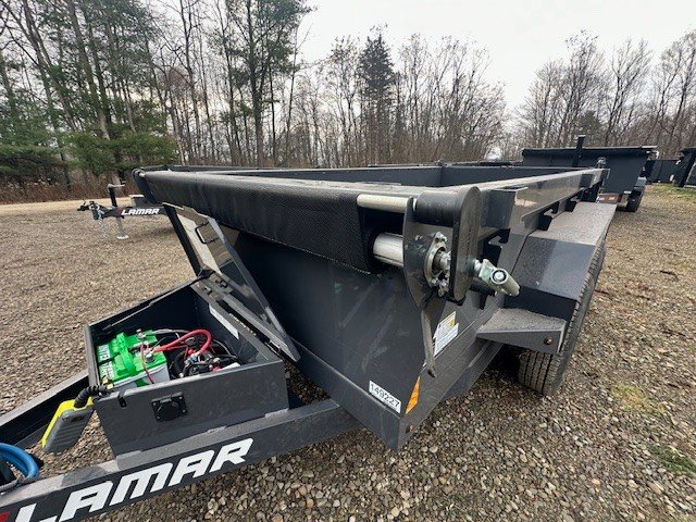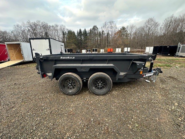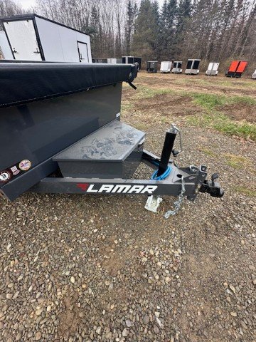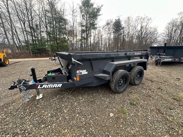 5X10 7K MINI DUMP DUAL AXLE BUMPER PULL 3.5K EZ LUBE ELECTRIC BRAKE SPRING AXLE(S) 205/75 R15 (C) 6PLY TIRE WITH BLACK WHEEL SPARE TIRE MOUNT 2" 10K DEMCO ADJ CAST COUPLER 7K DROP-LEG JACK FRONT TOOL BOX SPREADER GATE PAIR OF SLIDE-IN RAMPS 18" WELD-ON SIDES STANDARD STAKE POCKETS FOUR WELD ON D-RINGS 4" CHANNEL FRAME 16" CENTER-TO-CENTER CROSSMEMBERS 3.5" X 24" CYLINDER DEFAULT REMOTE MESH TARP WITH PULL BAR LED PACKAGE 12V DEEP CYCLE BATTERY KIT 5 AMP TRICKLE CHARGER LAMAR GRAY POWDER 7000GVW 3 YEAR STRUCTURAL WARRANTY, 1 YEAR COMPONENT WARRANTY, THE TRAILER FARM IS NOT RESPONSIBLE FOR ANY TYPOS OR MISPRINTS CASH OR CHECK $6495 THERE IS A 3% SURCHARGE FOR USE OF A DEBIT OR CREDIT CARD
