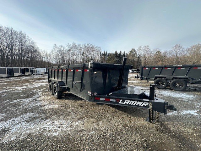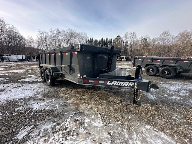2026 LAMAR TRAILERS 7X16 DUMP TRAILER WITH TELESCOPIC CYLINDER 3' WALLS2026 LAMAR TRAILERS 7X16 DUMP TRAILER BUMPER PULL 2 7K EZ LUBE ELECTRIC BRAKE SPRING AXLE(S) 7 GAUGE FLOOR 235/80 R16 (E)10PLY TIRE WITH BLACK WHEEL SPARE TIRE MOUNT 2-5/16" 21K DEMCO ADJ CAST COUPLER SINGLE 10K DROP-LEG JACK FRONT TOOL BOX SPREADER GATE PAIR OF HEAVY DUTY SLIDE IN RAMPS PAIR OF SUPPORT STANDS FENDERS 24" WELD ON WALLS STANDARD STAKE POCKETS FOUR WELD ON D-RINGS 8" 13 LB I-BEAM FRAME 12" CENTER-TO-CENTER CROSSMEMBERS 12V DC PUMP POWER UP DOWN GRAVITY DOWN MESH TARP WITH PULL BAR COLD WEATHER HARNESS LED PACKAGE 12V DEEP CYCLE BATTERY KIT 5 AMP TRICKLE CHARGER LAMAR GRAY POWDER COAT 14000GVW UPGRADES: TELESCOPIC CYLINDER 3' WALLS 3 YEAR STRUCTURAL WARRANTY, 1 YEAR COMPONENT WARRANTY, THE TRAILER FARM IS NOT RESPONSIBLE FOR ANY TYPOS OR MISPRINTS CASH OR CHECK $11995 THERE IS A 3% SURCHARGE FOR USE OF A DEBIT OR CREDIT CARD