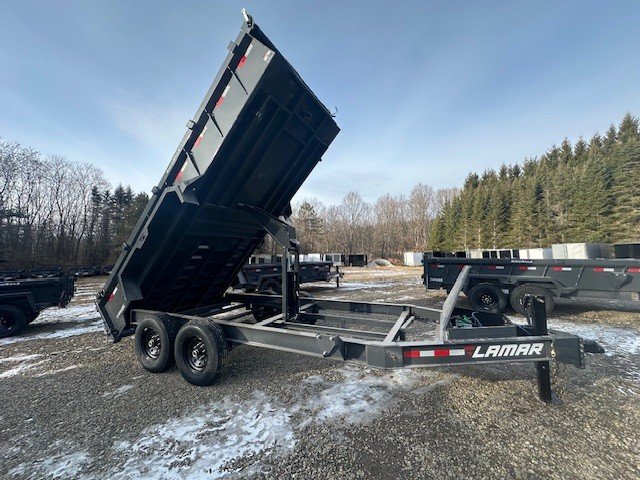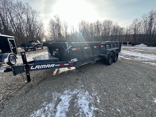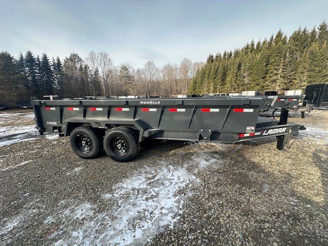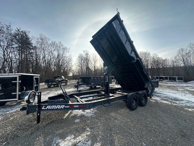 2026 LAMAR TRAILERS 7X16 DUMP TRAILER BUMPER PULL 2 7K EZ LUBE ELECTRIC BRAKE SPRING AXLE(S) 7 GAUGE FLOOR 235/80 R16 (E)10PLY TIRE WITH BLACK WHEEL SPARE TIRE MOUNT 2-5/16" 21K DEMCO ADJ CAST COUPLER SINGLE 10K DROP-LEG JACK FRONT TOOL BOX SPREADER GATE PAIR OF HEAVY DUTY SLIDE IN RAMPS PAIR OF SUPPORT STANDS FENDERS 24" WELD-ON SIDES STANDARD STAKE POCKETS FOUR WELD ON D-RINGS 8" 13 LB I-BEAM FRAME 12" CENTER-TO-CENTER CROSSMEMBERS 12V DC PUMP POWER UP DOWN GRAVITY DOWN MESH TARP WITH PULL BAR COLD WEATHER HARNESS LED PACKAGE 12V DEEP CYCLE BATTERY KIT 5 AMP TRICKLE CHARGER LAMAR GRAY POWDER COAT 14000GVW 3 YEAR STRUCTURAL WARRANTY, 1 YEAR COMPONENT WARRANTY, THE TRAILER FARM IS NOT RESPONSIBLE FOR ANY TYPOS OR MISPRINTS CASH OR CHECK $11195 THERE IS A 3% SURCHARGE FOR USE OF A DEBIT OR CREDIT CARD