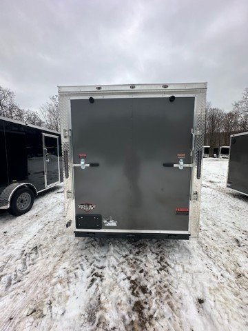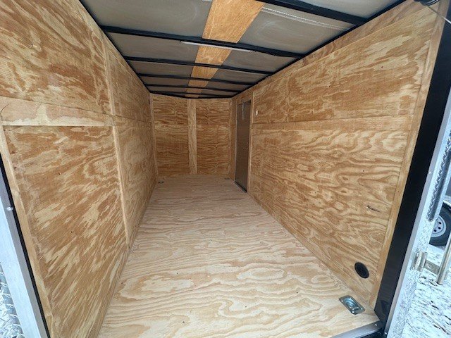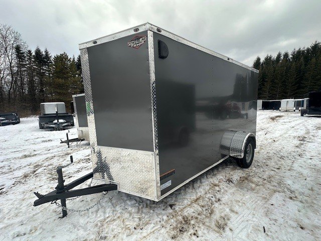 2026 POWER LINE CARGO 6X12 ENCLOSED V-NOSE TRAILER 2" BALL 4 WAY ELECTRICAL PLUG TUBULAR FRAME 16" O/C CROSS MEMBERS 16" O/C WALL STUDS 24" O/C ROOF CROSSMEMBERS 6'3 INTERIOR HEIGHT LED LIGHTS PLYWOOD INTERIOR SIDE BAR LOCK OVER DOOR 1 3500LBS EZ LUBE AXLE UPGRADES: HEAVY DUTY POLYCOR 4 RECESSED D-RINGS THE TRAILER FARM IS NOT RESPONSIBLE FOR ANY TYPOS OR MISPRINTS CASH OR CHECK $4095 THERE IS A 3% SURCHARGE FOR USE OF A DEBIT OR CREDIT CARD