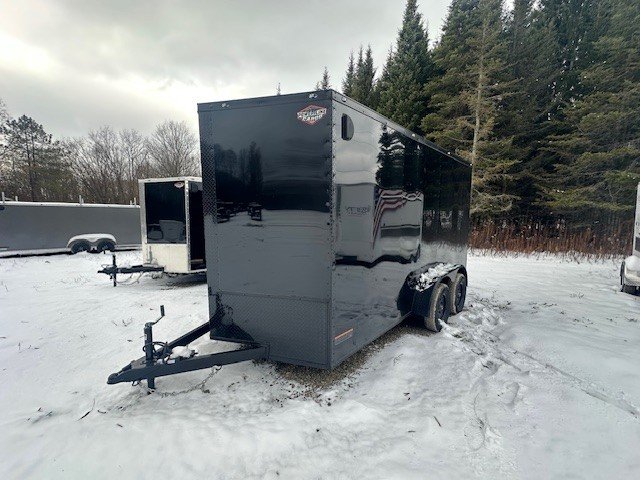 2026 POWERLINE CARGO 7X14 ENCLOSED TRAILER V-NOSE V-NOSE 2 5/16 "COUPLER 2 3500LBS EZ LUBE AXLES V NOSE SAFETY CHAINS RADIAL TIRES LED LIGHTS LED MARKER LIGHTS RV STYLE LOCK SWIVEL JACK 7000GVW 3/4 PLYWOOD ON FLOOR 3/8 PLYWOOD ON WALL UPGRADES: POLYCOR EXTERIOR TUBULAR FRAME EXTRA HEIGHT BLACKOUT PACKAGE 3 YEAR MANUFACTURER WARRANTY THE TRAILER FARM IS NOT RESPONSIBLE FOR ANY TYPOS OR MISPRINTS CASH OR CHECK $6595 THERE IS A 3% SURCHARGE FOR USE OF A DEBIT OR CREDIT CARD