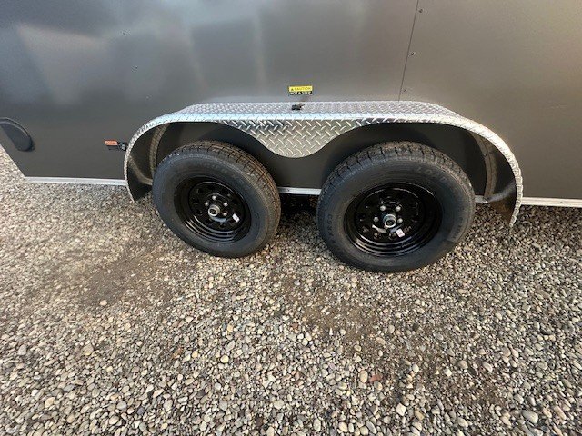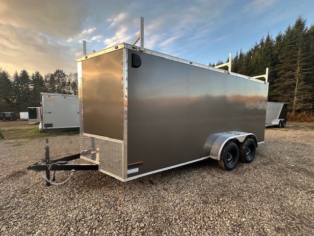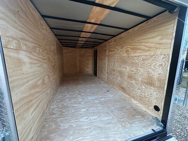 2026 POWER LINE CARGO 7X16 ENCLOSED CARGO TRAILER BLACK OUT WITH EXTRA HEIGHT V-NOSE 2 5/16 "COUPLER 2 3500LBS EZ LUBE AXLES V NOSE SAFETY CHAINS RADIAL TIRES LED LIGHTS LED MARKER LIGHTS RV STYLE LOCK SWIVEL JACK 7000GVW 3/4 PLYWOOD ON FLOOR 3/8 PLYWOOD ON WALL 6'3 INTERIOR HEIGHT UPGRADES: POLYCOR EXTERIOR LADDER AND ACCESS LADDER 3 YEAR MANUFACTURER WARRANTY THE TRAILER FARM IS NOT RESPONSIBLE FOR ANY TYPOS OR MISPRINTS CASH OR CHECK $6995 THERE IS A 3% SURCHARGE FOR USE OF A DEBIT OR CREDIT CARD