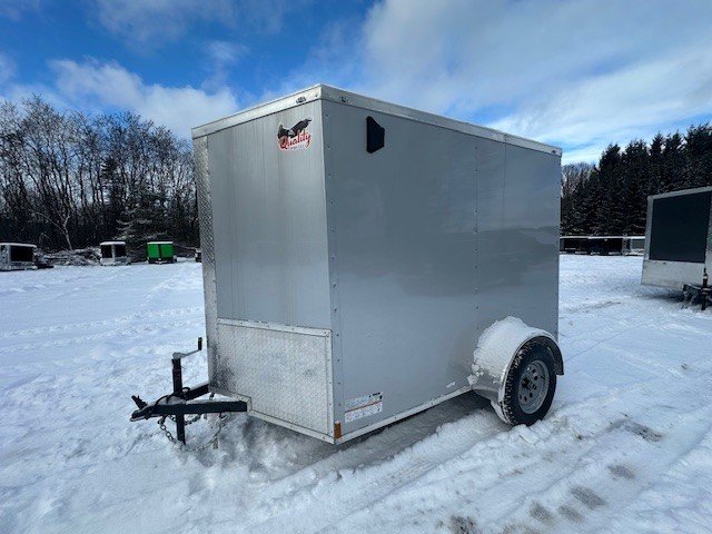 2026 QUALITY CARGO 6X8 ENCLOSED CARGO TRAILER V-NOSE 2 "COUPLER 1 3500LBS EZ LUBE AXLES V NOSE SAFETY CHAINS RADIAL TIRES LED TAIL LIGHTS LIGHTS MARKER LIGHTS RV STYLE LOCK SWIVEL JACK 2990GVW RAMP DOOR 3/4 " PLYWOOD ON FLOOR 3/8 " PLYWOOD ON WALL SEMI SCREWLESS EXTERIOR THE TRAILER FARM IS NOT RESPONSIBLE FOR ANY TYPOS OR MISPRINTS CASH OR CHECK $3695 THERE IS A 3% SURCHARGE FOR USE OF A DEBIT OR CREDIT CARD