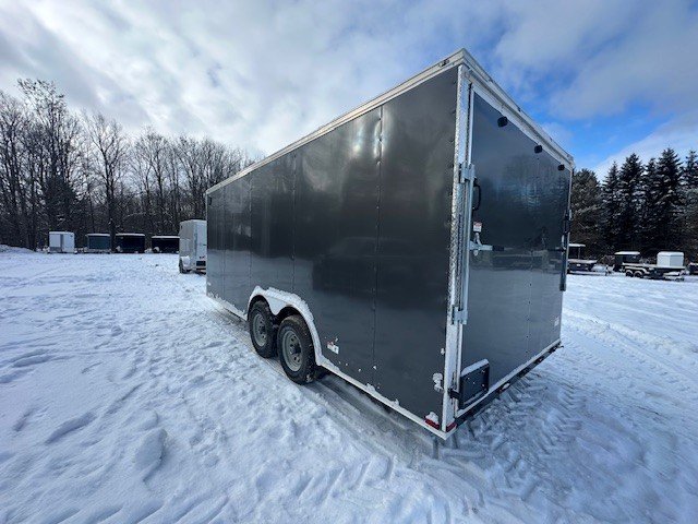 2026 QUALITY CARGO 8.5X18 DUAL AXLE ENCLOSED TRAILER 2 5/16 COUPLER ELECTRIC BRAKES 16" O/C CROSS MEMBERS 16" O/C WALL STUDS 24" O/C ROOF 3/4 PLYWOOD ON FLOOR 3/8 PLYWOOD ON WALL SAFETY CHAINS 2K SWIVEL JACK RADIAL TIRES 2 5200LBS EZ LUBE AXLE SEMI SCREWLESS EXTERIOR UPGRADES: 4 RECESSED D-RINGS 2 5200LBS AXLES FOR 9990GVW THE TRAILER FARM IS NOT RESPONSIBLE FOR ANY TYPOS OR MISPRINTS CASH OR CHECK $7895 THERE IS A 3% SURCHARGE FOR USE OF A DEBIT OR CREDIT CARD